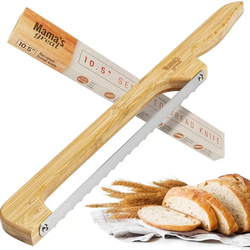 سكين خشبي لتقطيع الخبز بمقبض خشبي مسنن آمن للغسل والصحون وصديقا للفرن آمن للقطع والتحميص الرغيف الفرنسي